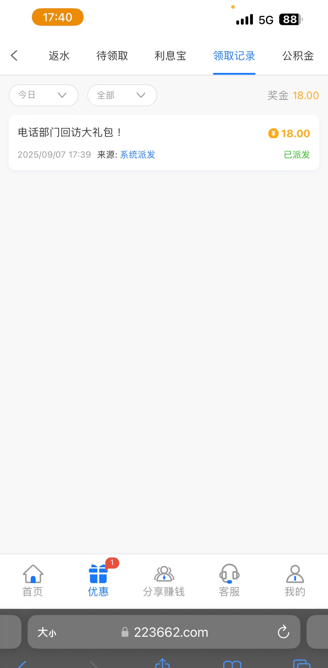 没充值过,接到电话送了18,可以去碰瓷看看,
