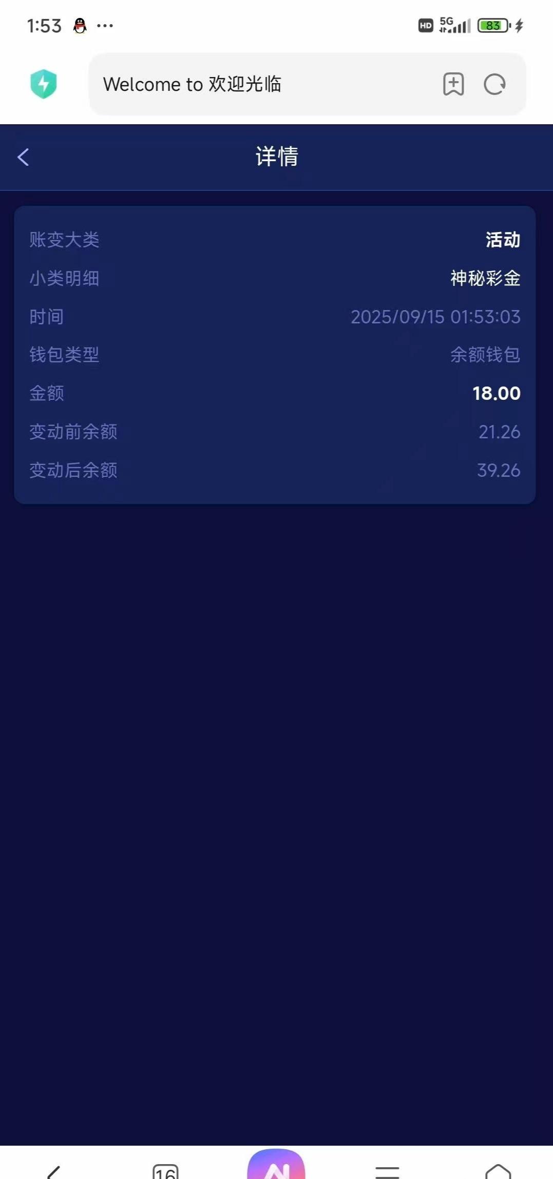 送18有号的上去看看刚刚上去领了周彩金 有个神秘彩金
