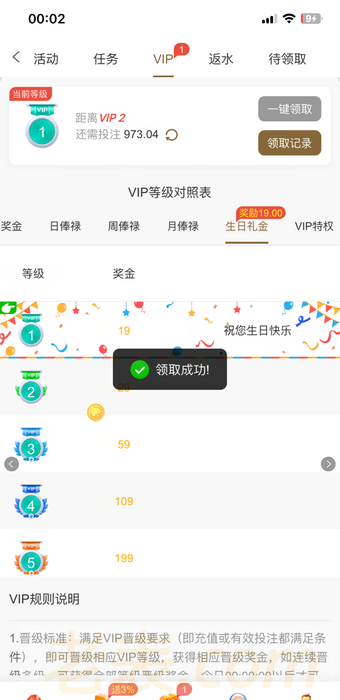 玩过的有v1就能领 在设置里面设置生日日期 设置成19号 明天就能领 我昨天设置的今天领到了