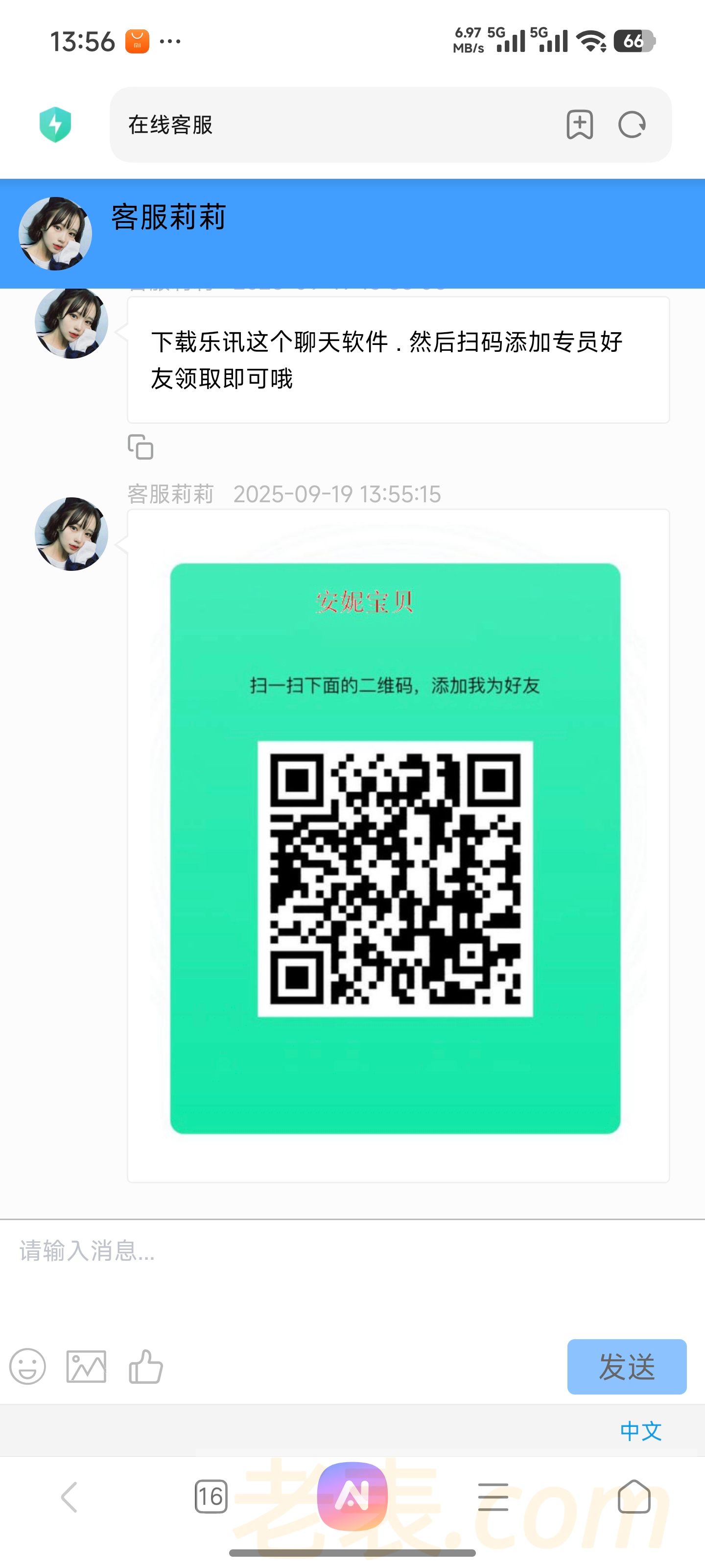 电话打来的,找客服发手机号下载聊天app送3天188,提现没有测 去碰一下