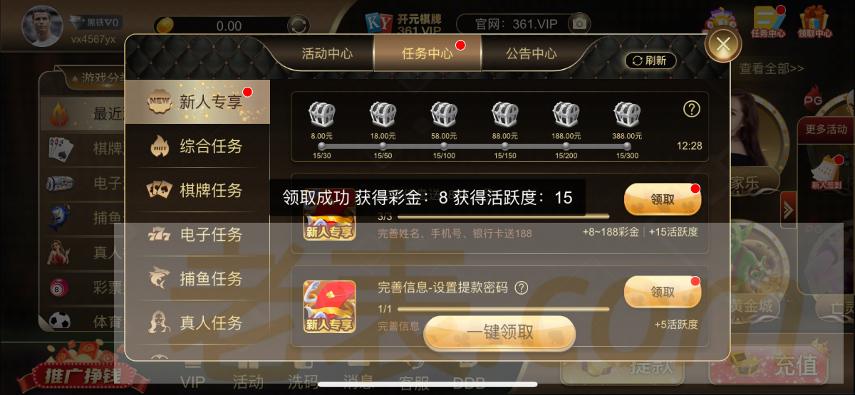 注册完善信息优惠任务领取